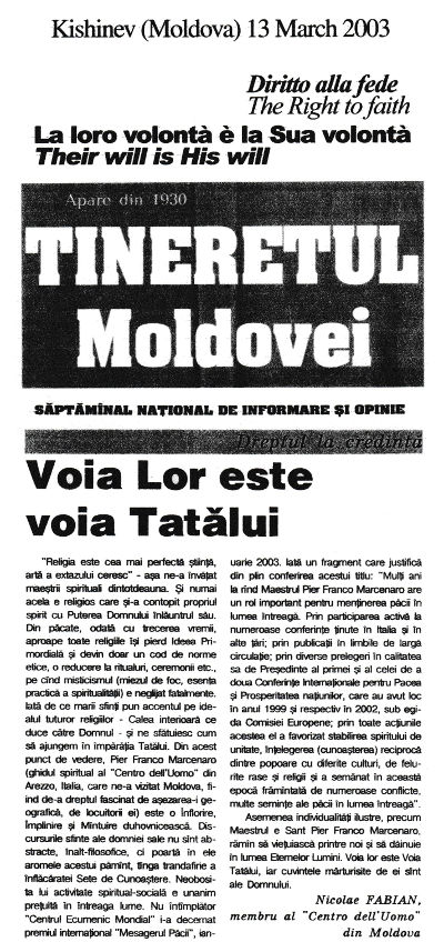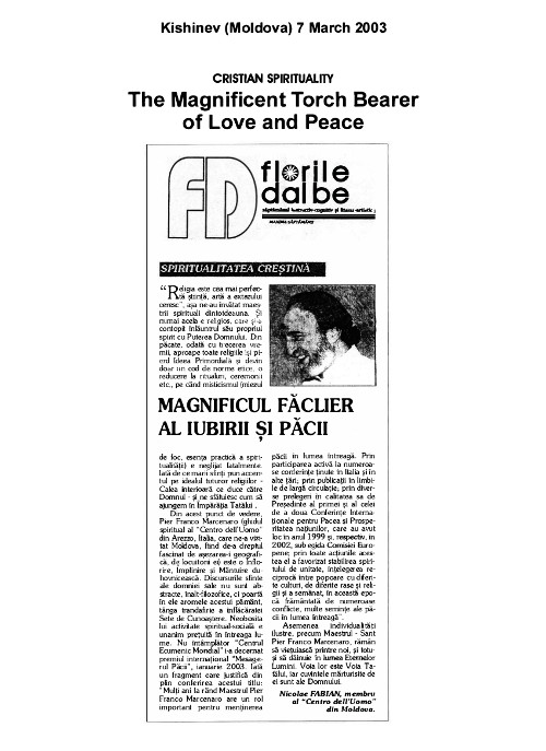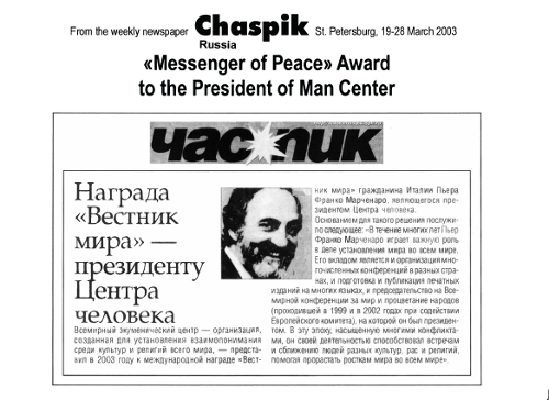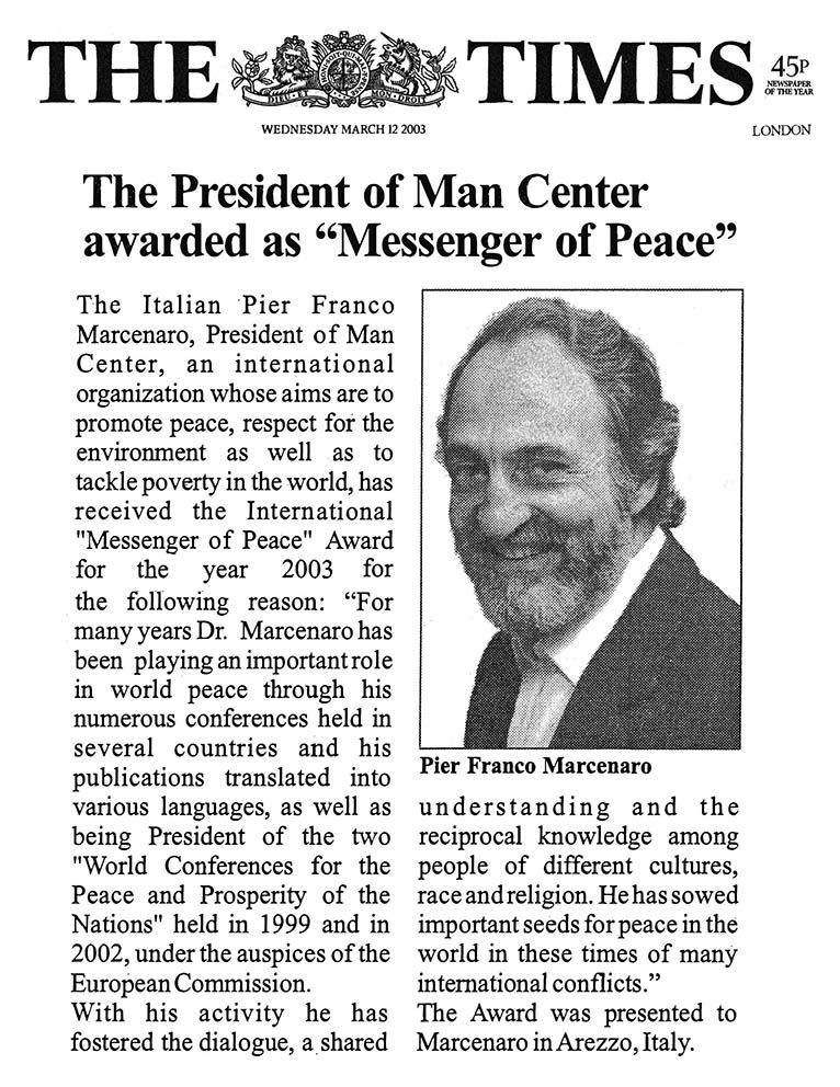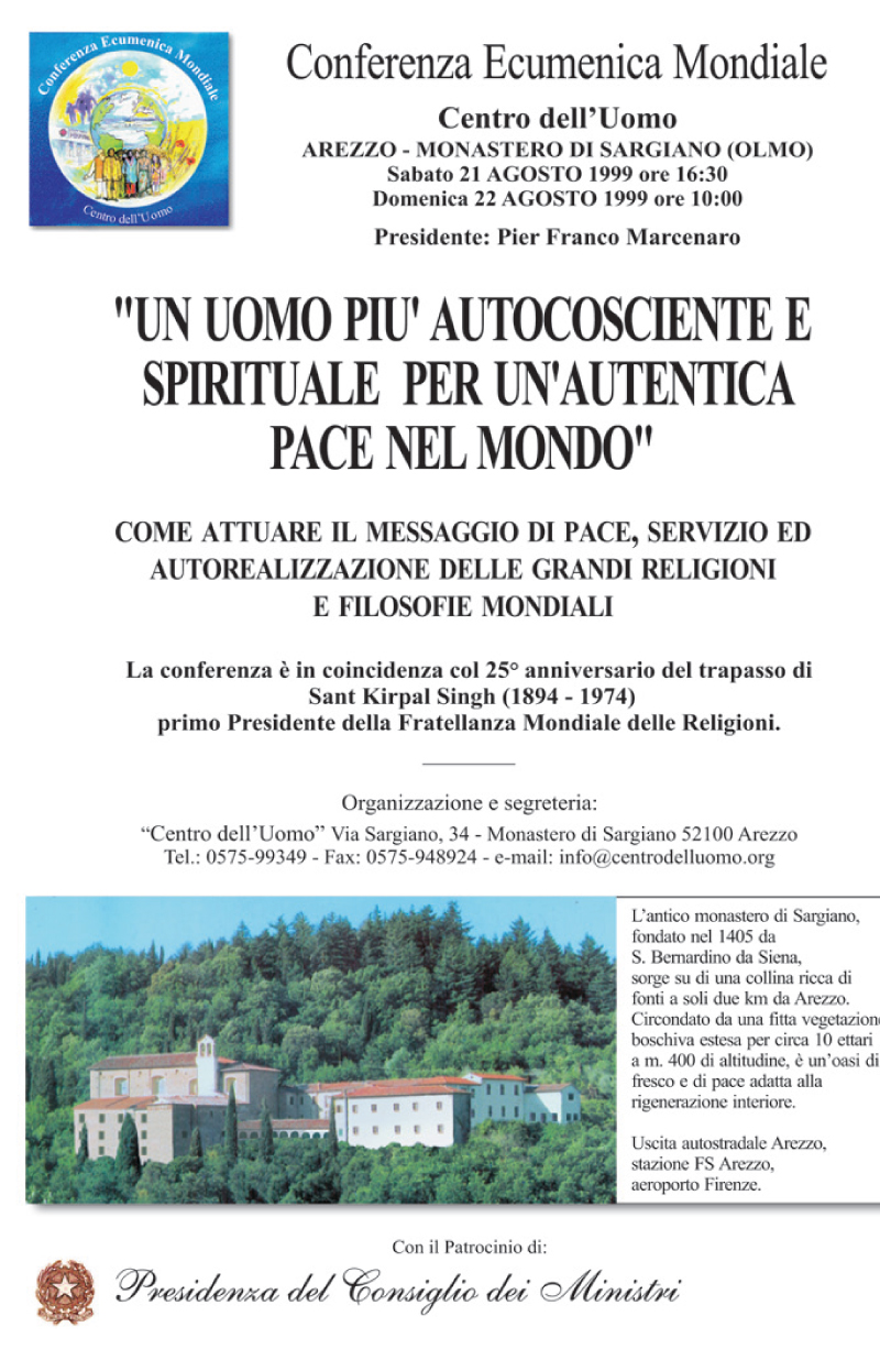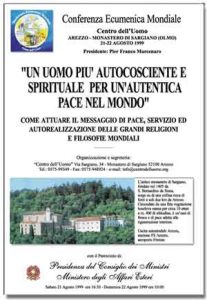 La " Conférence Œcuménique Mondiale " s'est tenue au Centre de l'Homme, à Arezzo: elle a vu la participation de délégués venus du monde entier, appartenant à des religions et à des traditions culturelles différentes. Au terme de la Conférence ils ont dressé un " Rapport Final " qui a été adressé aux Chefs des Gouvernements de toutes les principales Nations du Monde.